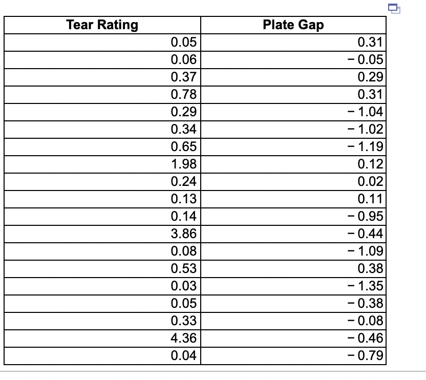 Solved Tear Rating Plate Gap 0 05 0 06 0 37 0 78 0 29 Chegg Com